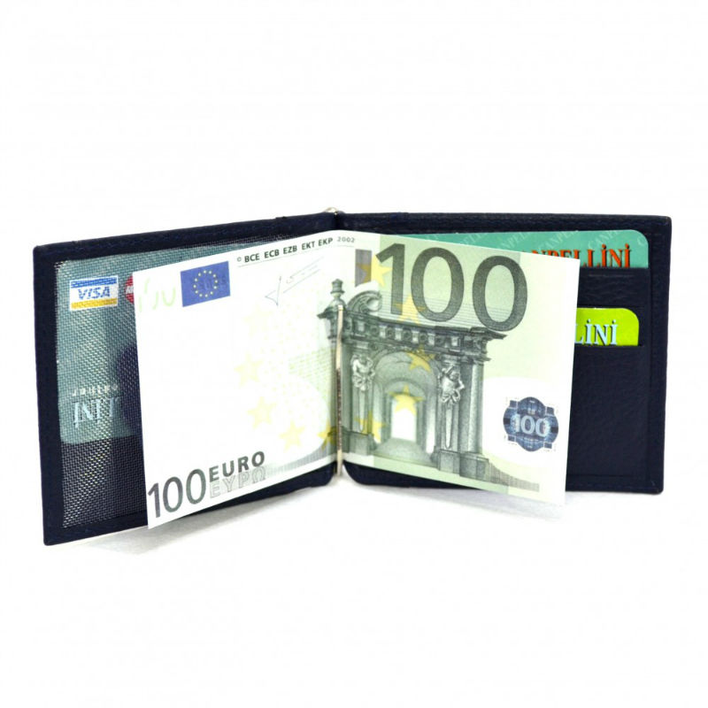 - Портмоне-шкіряний затиск CANPEL 070-241 синього кольору зі шкіри флотар.