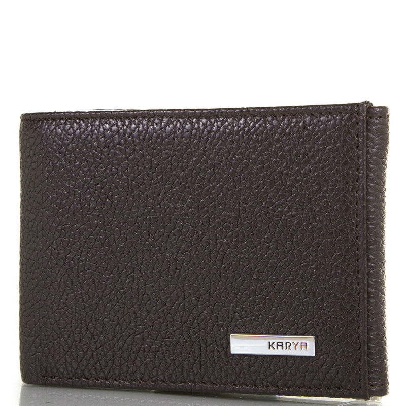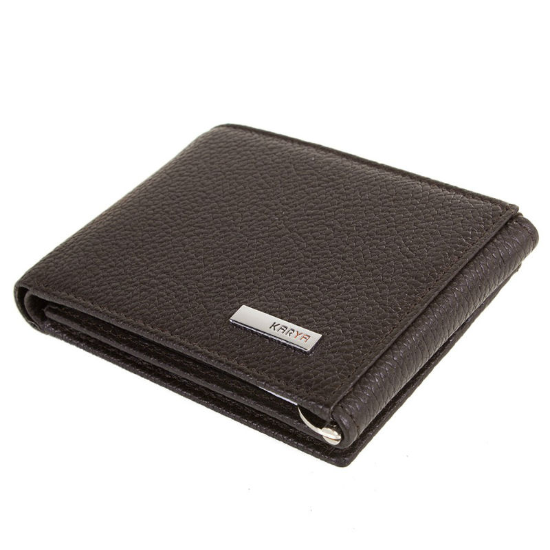 - Затиск для грошей KARYA 0931-39 коричневі з натуральної шкіри флотар.