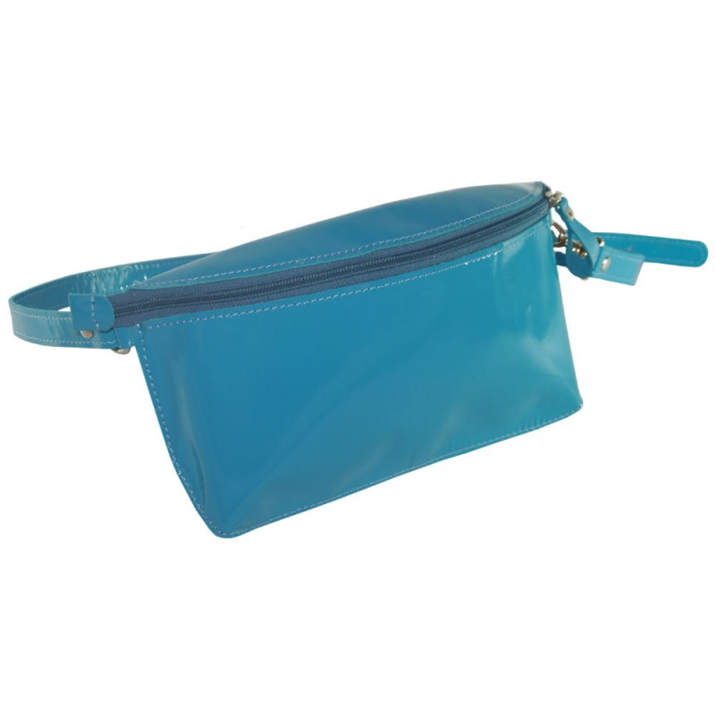 - Поясна шкіряна сумка LEVEL Виноград лакована бірюзова.