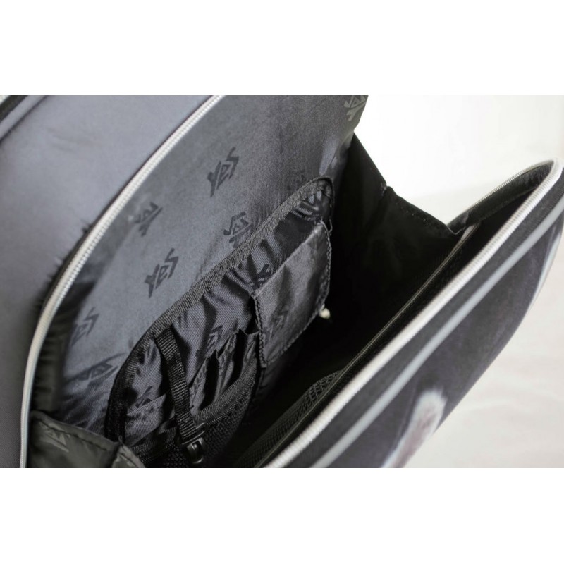 - В передньому відділі органайзер з кишеньками, основне відділення ділиться на 3 відсіки; 2 зовнішніх бічних кишені з сітки.