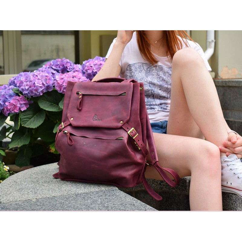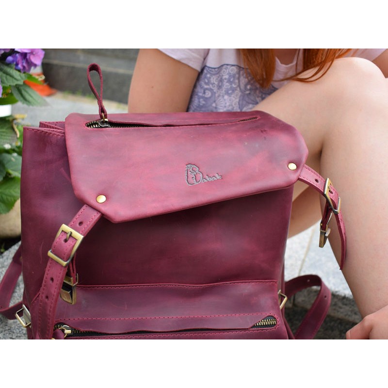 - Яскравий шкіряний рюкзак 896066 марсала зі шкіри "crazy horse".