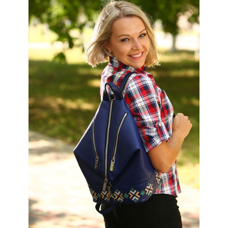 - Рюкзак Alba Soboni 181402 синій з красивою аплікацією у нижній частині.