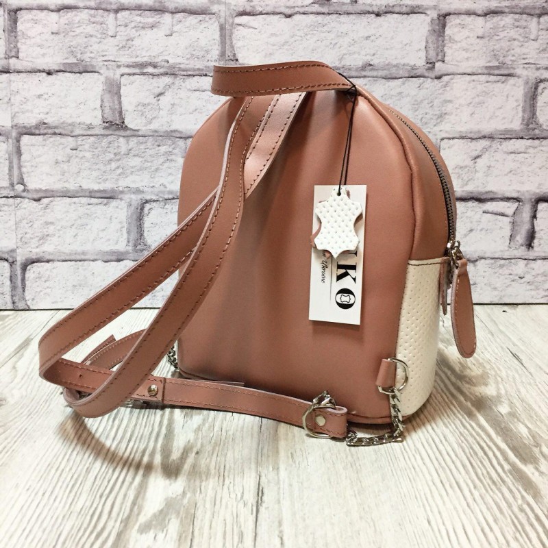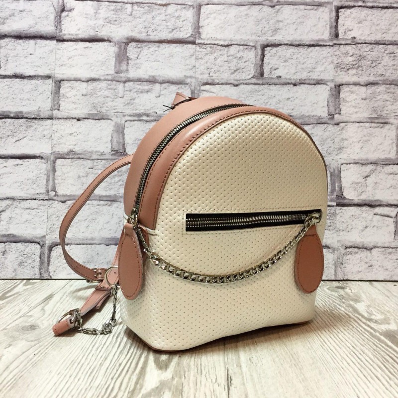- Зручний жіночий шкіряний рюкзак ANKO ШАЙН біло/рожевий.