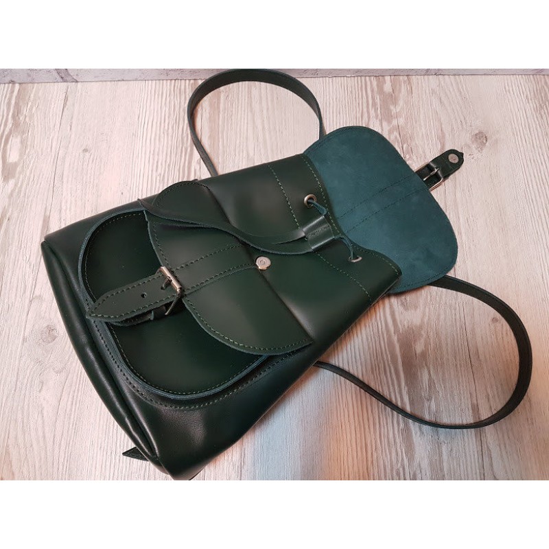- Місткий рюкзак жіночий ANKO ВОЯЖ натуральна шкіра темно-зелена матова.