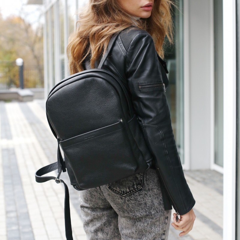 Жіночий шкіряний рюкзак JIZUZ Carbon Black чорний з натуральної шкіри.