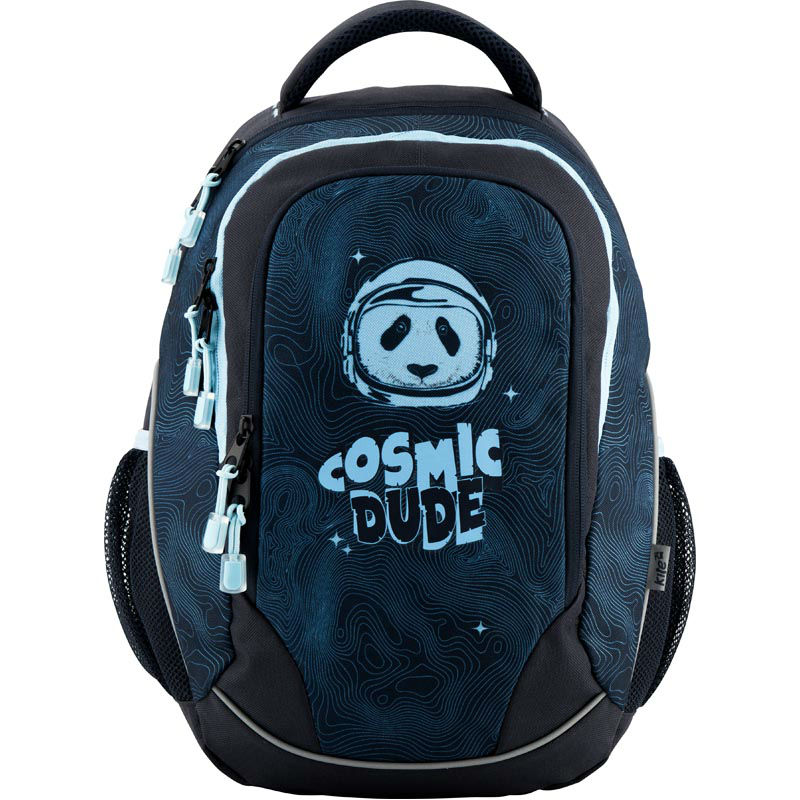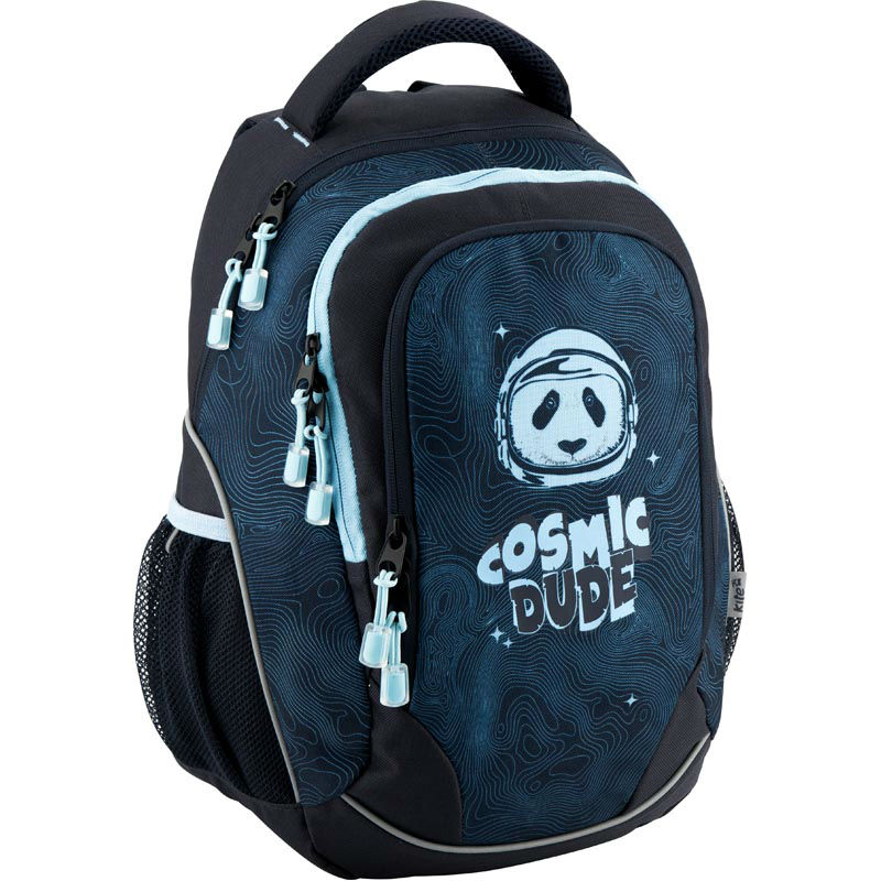 - Рюкзак Kite Junior K18-816M чорний з міцного поліестеру з принтом панди-космонавта.