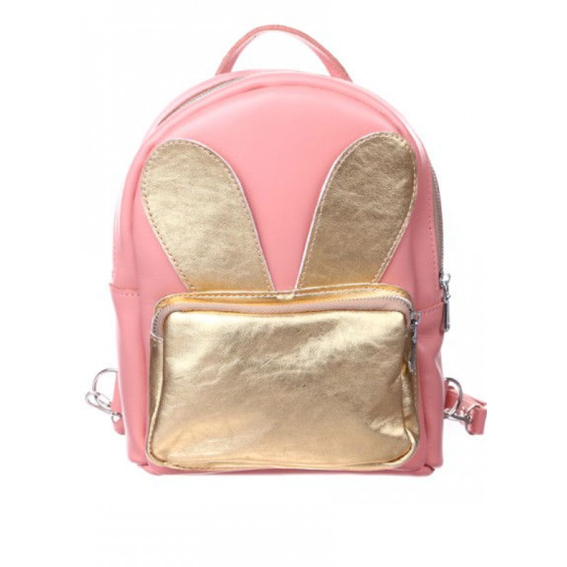 - Симпатичний жіночий рюкзак шкіряний DEKEY 2.0 Зайчик Пудра+Золото з вушками.