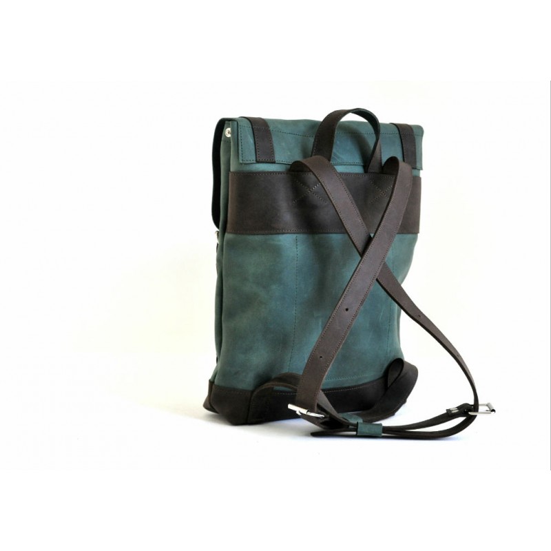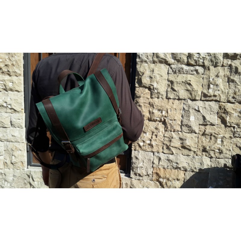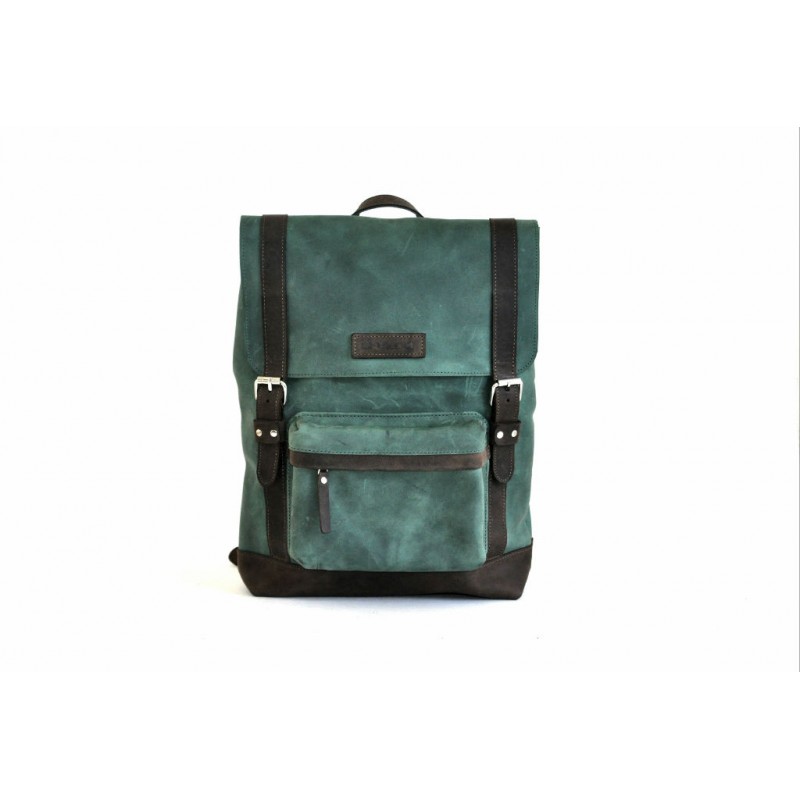 - Місткий шкіряний рюкзак P560 зелений з посиленим дном.