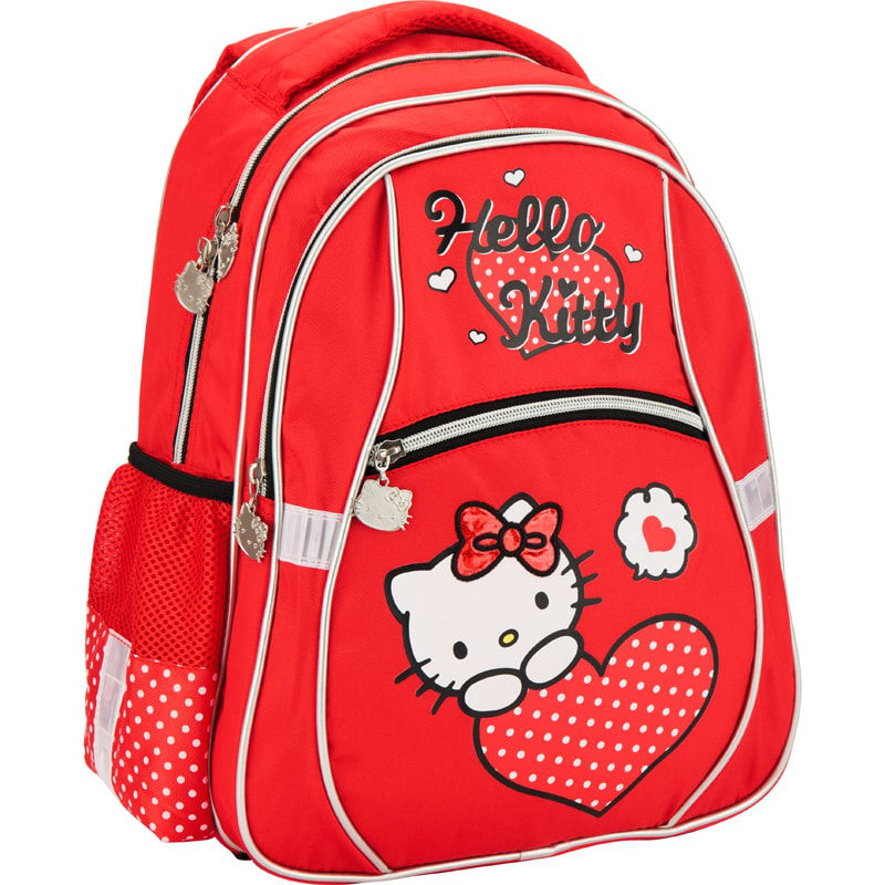 - Рюкзак школьний 523 Hello Kitty HK17-523S червоний з принтом Хелло Кітті.