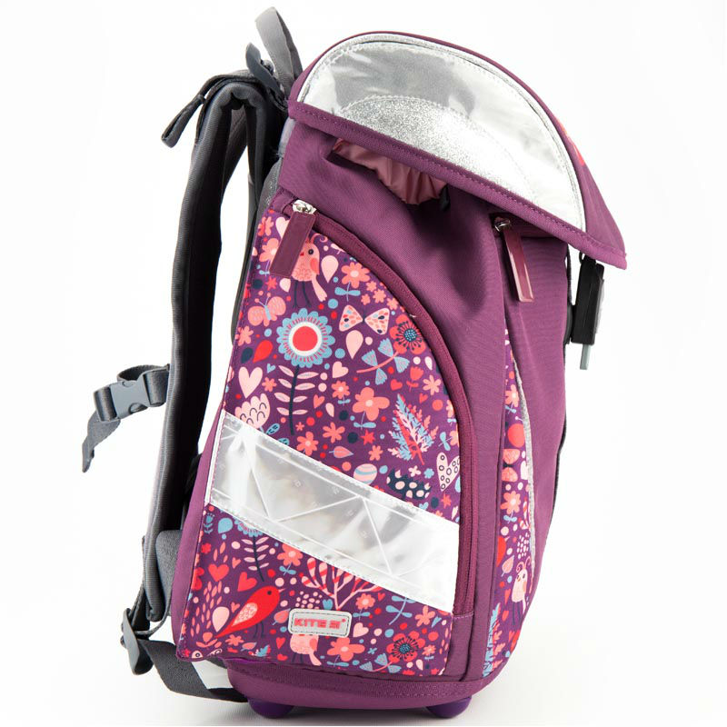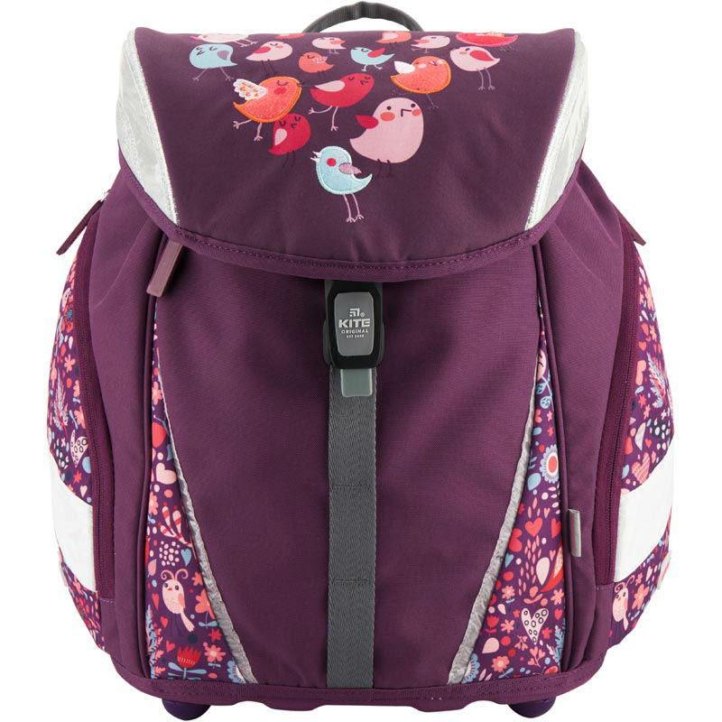 - Гарний рюкзак шкільний Kite K18-577S-1 сливовий з пташками для дівчаток молодшої та середньої школи.