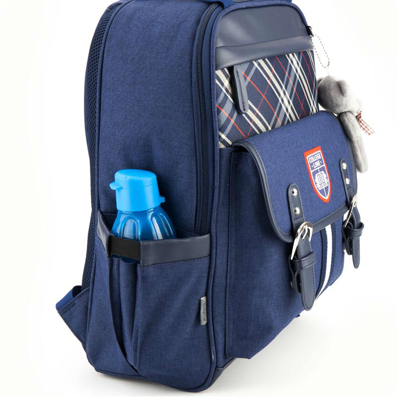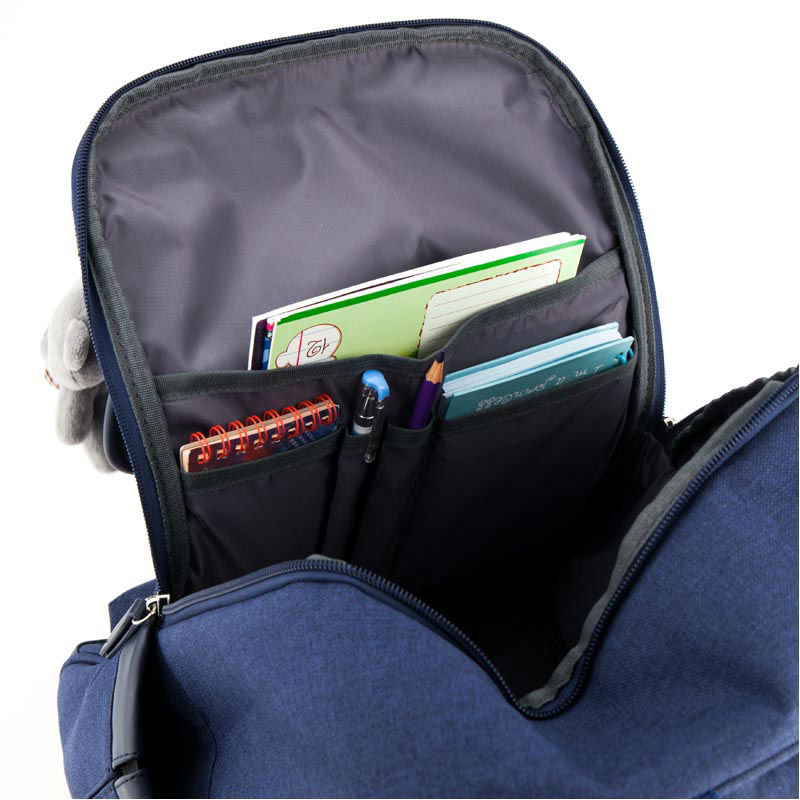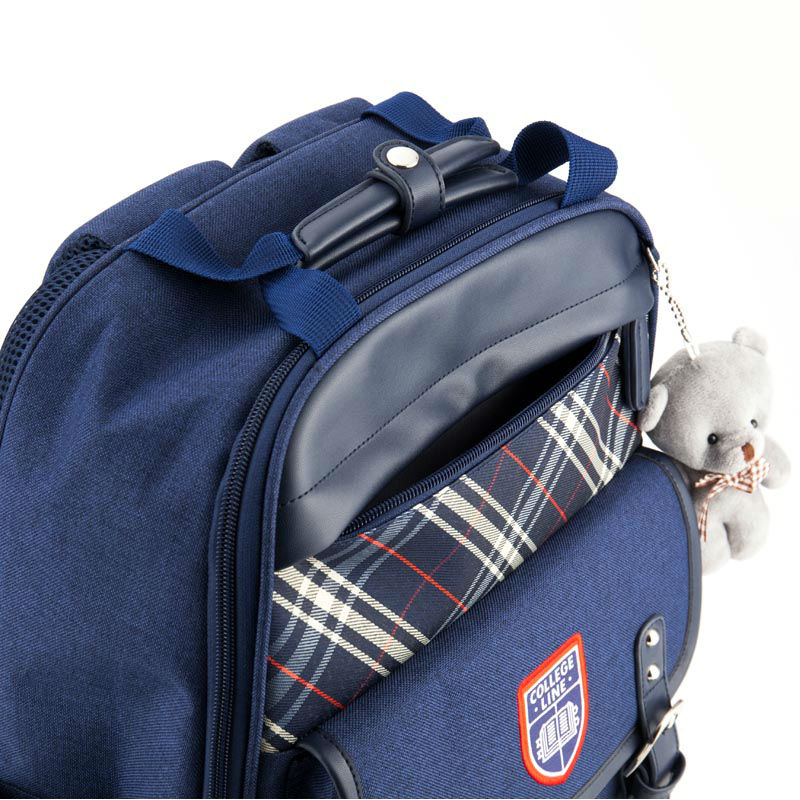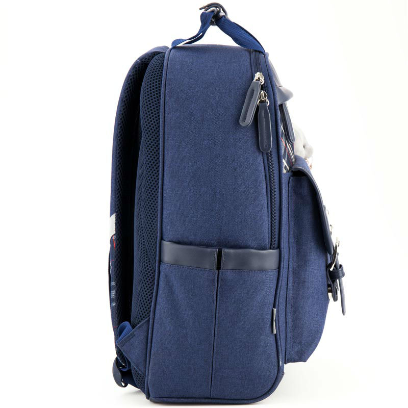 - Рюкзак шкільний Kite Сollege line K18-737M-2 синій меланж з емблемою Коледж лайн і ведмедиком.