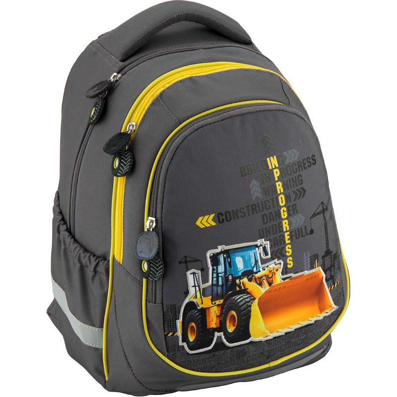 - Рюкзак шкільний Kite Under construction K18-700М-1 сірий з зображенням екскаватора.