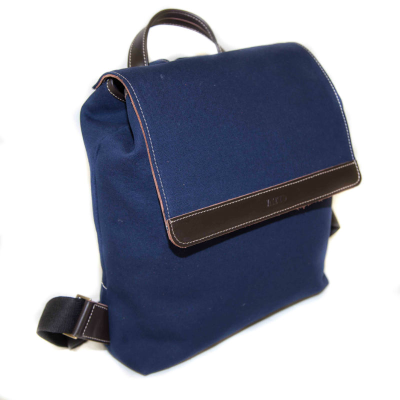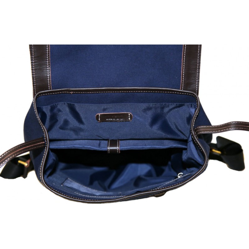 - Міський рюкзак текстильний VATTO MT26.1 H2Kr400 синій з вставками з натуральної коричневої шкіри.