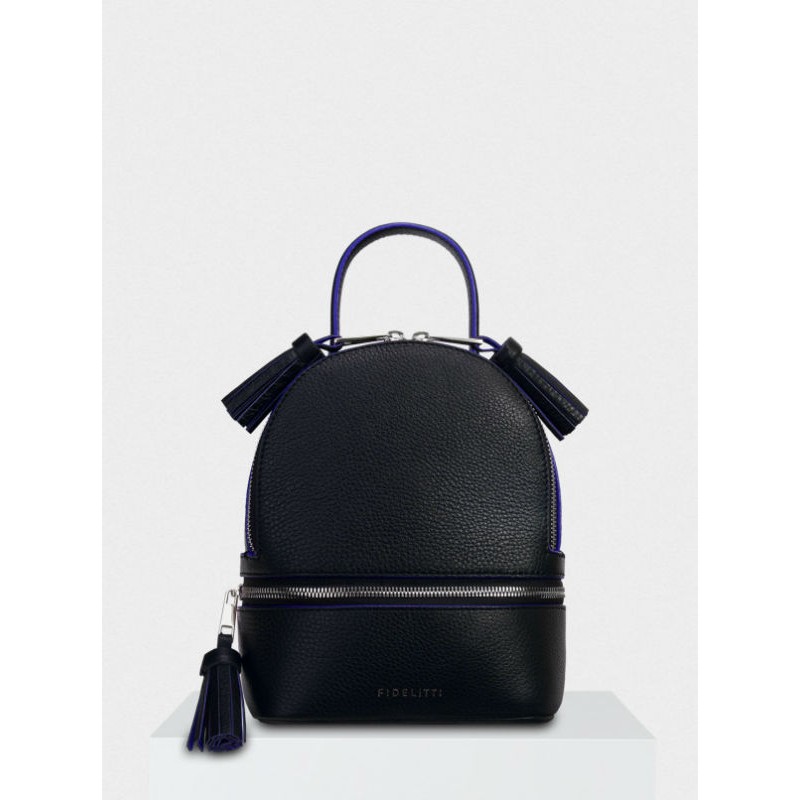- Жіночий рюкзак з натуральної шкіри Salerno mini 058/0/Lu/B чорний з синім.