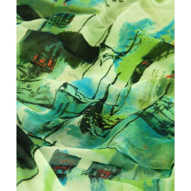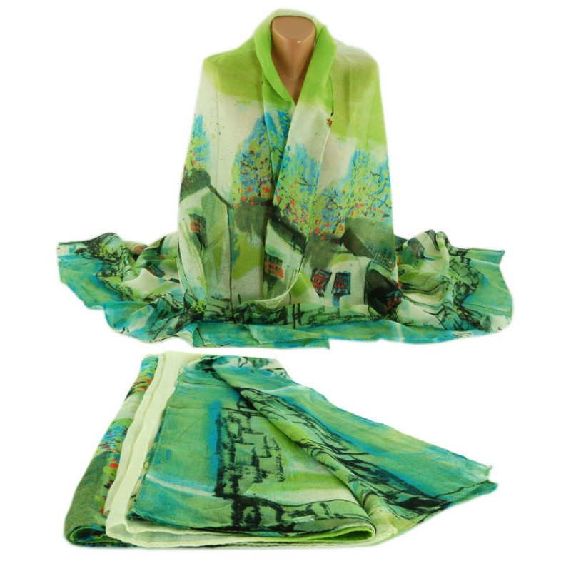 Шаль-парео TRAUM 2498-64 зелена з гарним принтом міста.