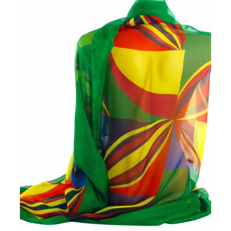 Шаль TRAUM 2497-53 зелена з яскравим принтом.