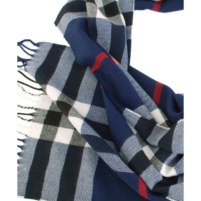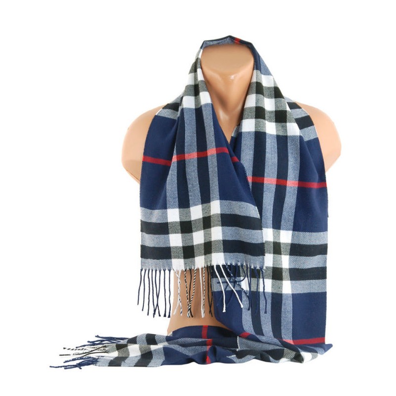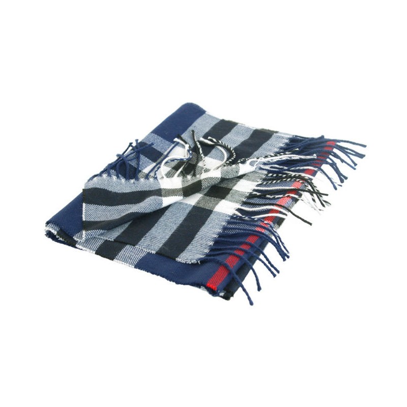 Напіввовняний шарф TRAUM 2493-09 синій з білим. Прикрашений бахромою.