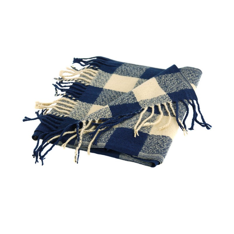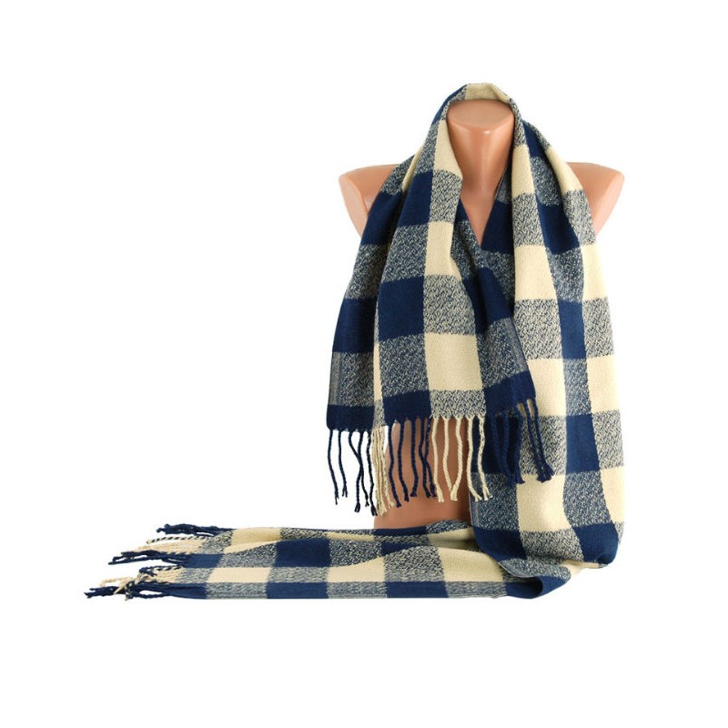 Шарф TRAUM 2493-24 синій з бежевою кліткою.