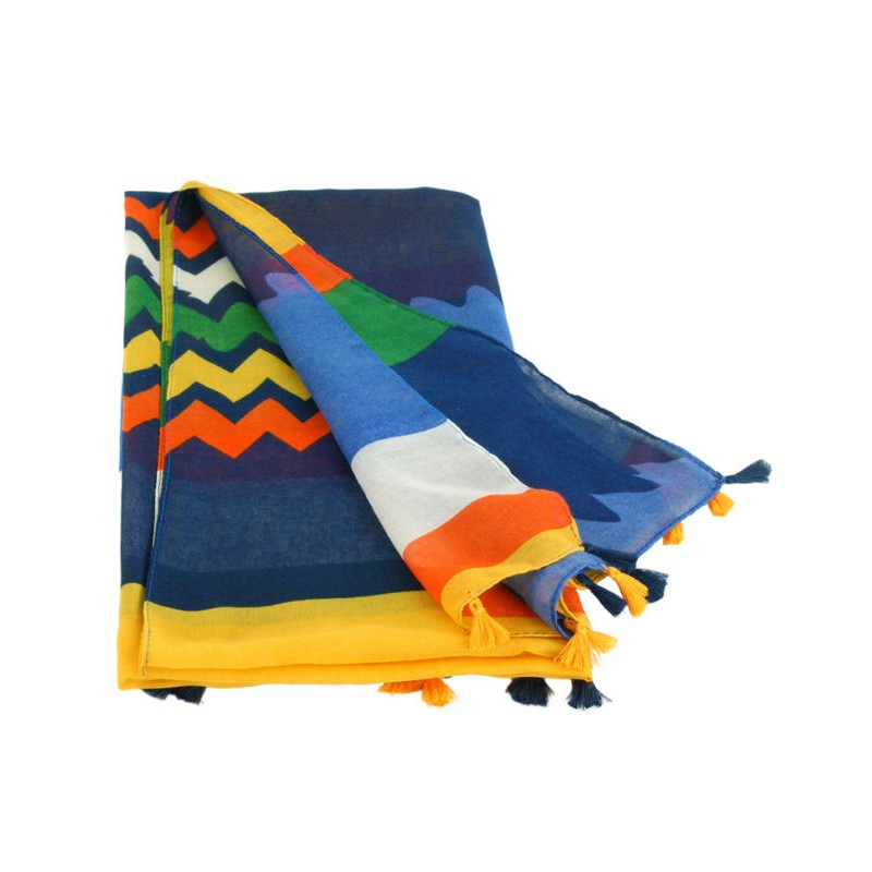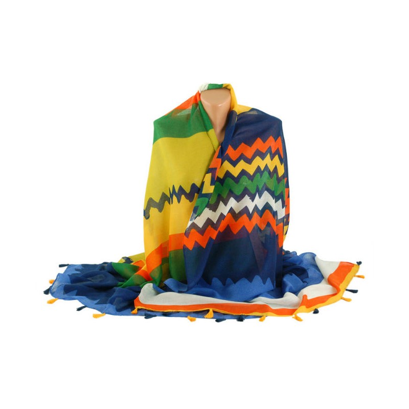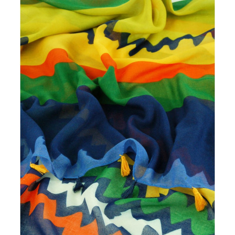Легкий смугастий шарф TRAUM 2498-82 різнобарвний з пензликами.