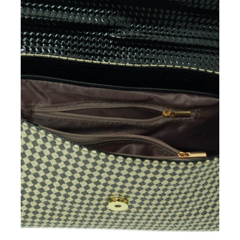 - Лакований клатч-сумка 7212-00 з тисненням чорного кольору з золотим малюнком.