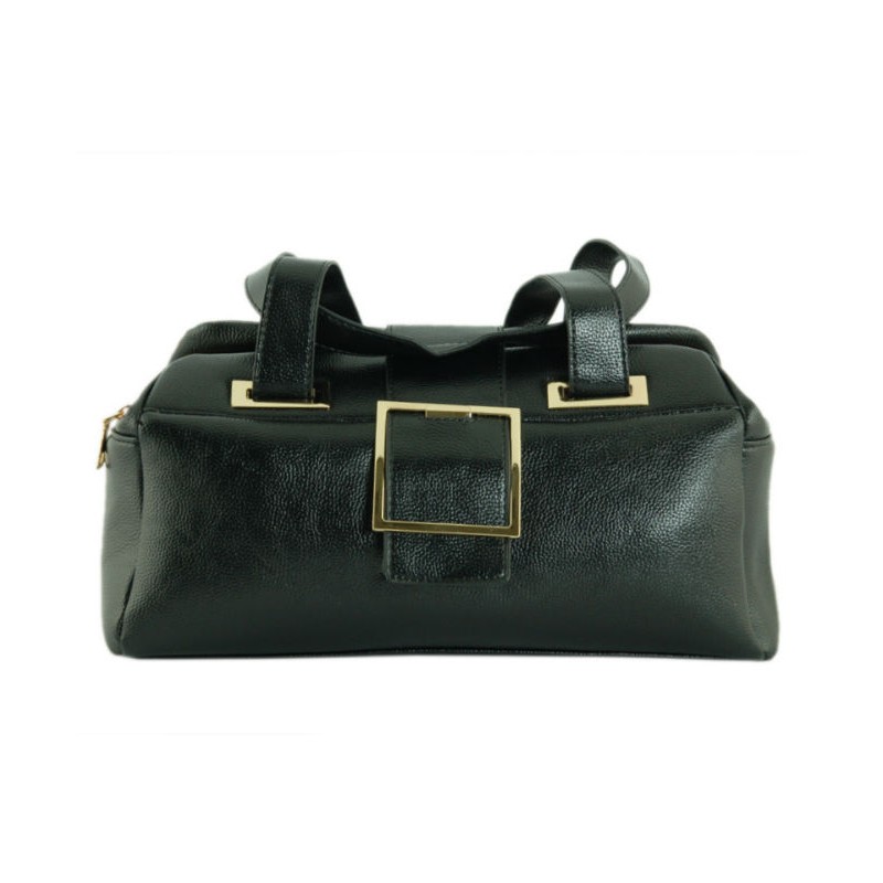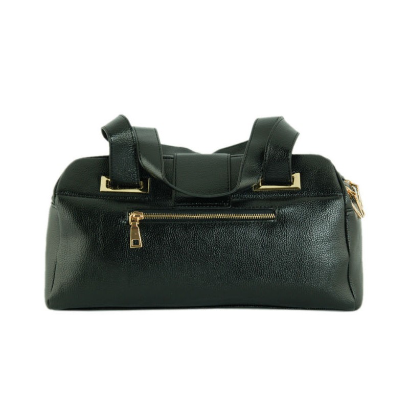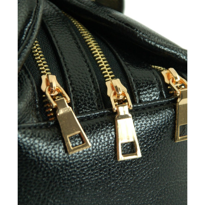 - Сумка-саквояж 7226-20 чорного кольору з 3 відділеннями на блискавках і широким хлястиком на магнітній застібці.