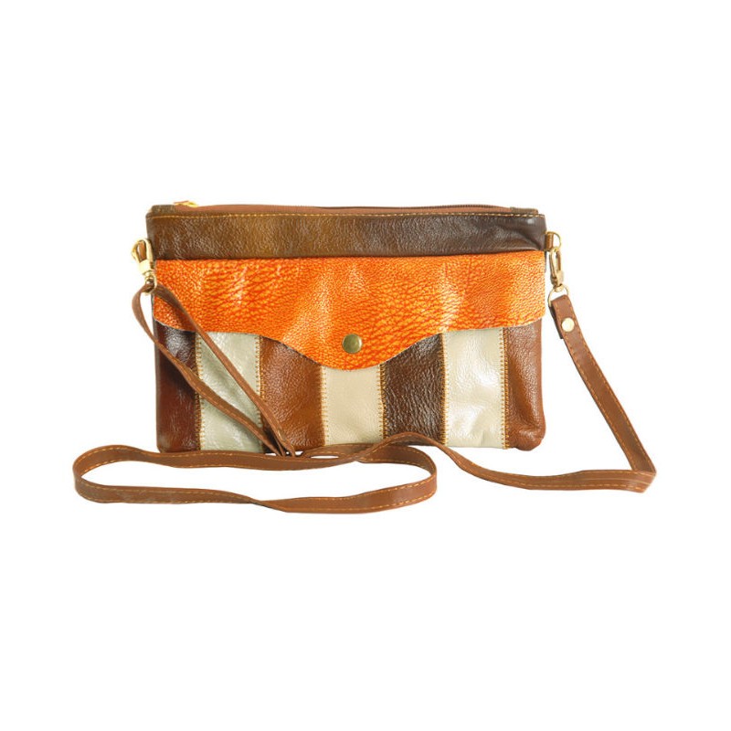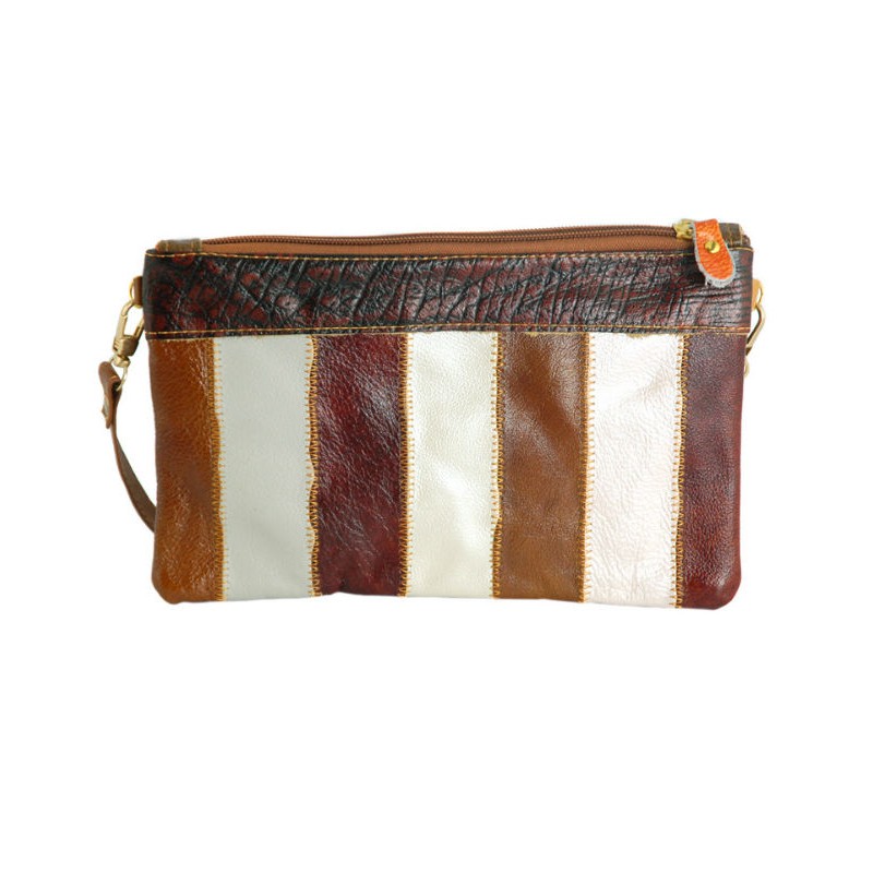 - Клатч 7320-04 коричнево-білий з шматочків натуральної шкіри.