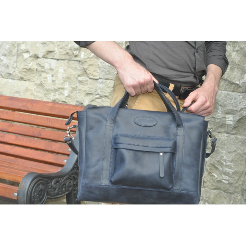 - Чоловіча шкіряна сумка-портфель B670 синя.