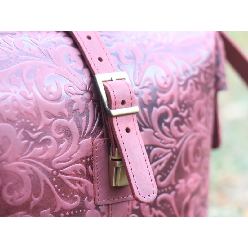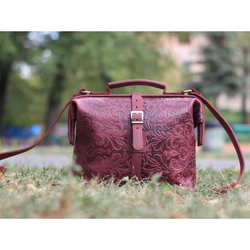 - Шкіряна сумка з тисненням Babak 906066T марсала з металевою рамкою яка створює унікальну форму сумки.