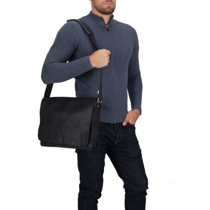 - Горизонтальна чоловіча шкіряна сумка через плече BEXHILL BXA603A чорна.