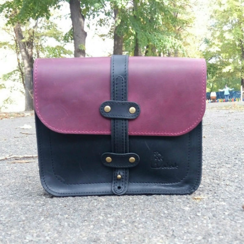 - Жіноча шкіряна сумка Folk 865076/66 чорна з малиновим клапаном зроблена з натуральної шкіри «сrazy horse» з ефектом старіння.