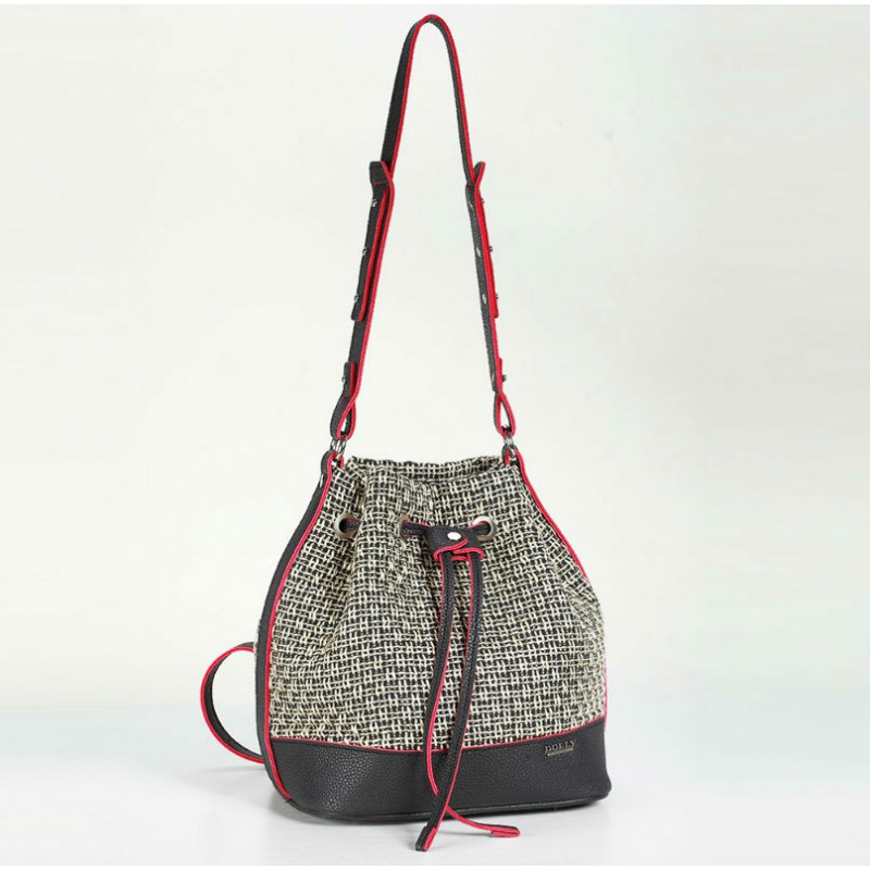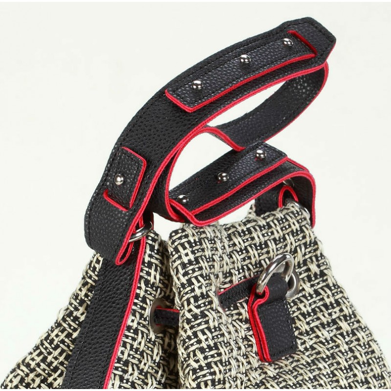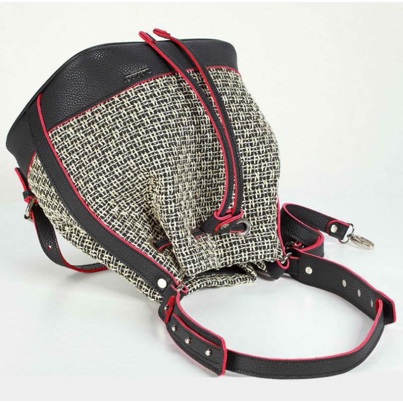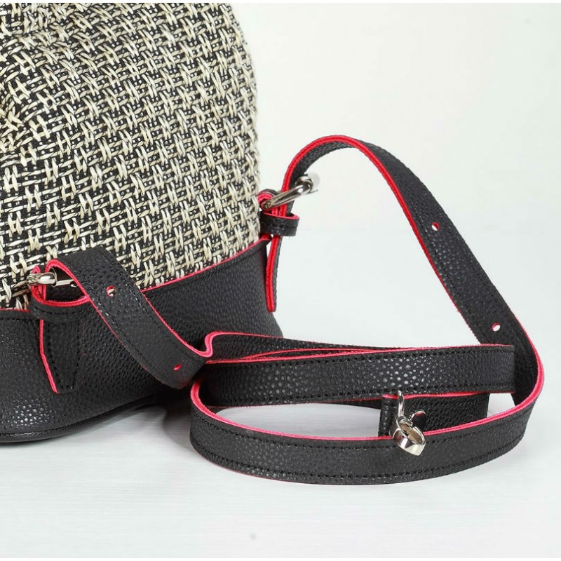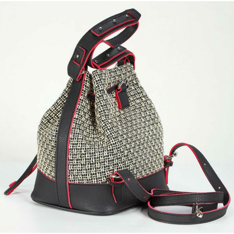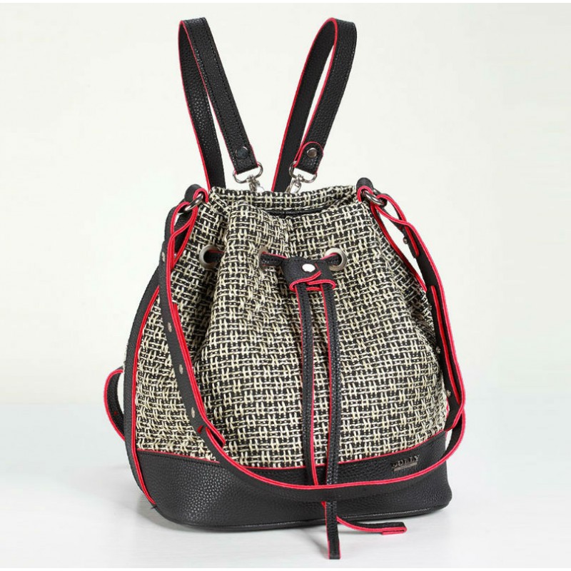 - Сумка-рюкзак 470 Dolly виконана з щільного текстилю з плетінням між собою ниток нагадують "соломку".