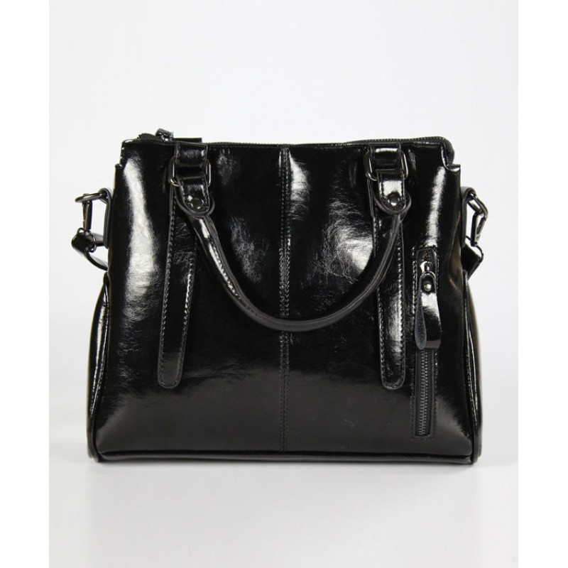 - Жіноча сумка 7230-21 з якісної PU шкіри чорного кольору, на блискавці.