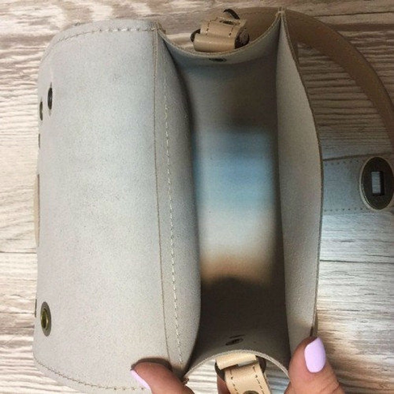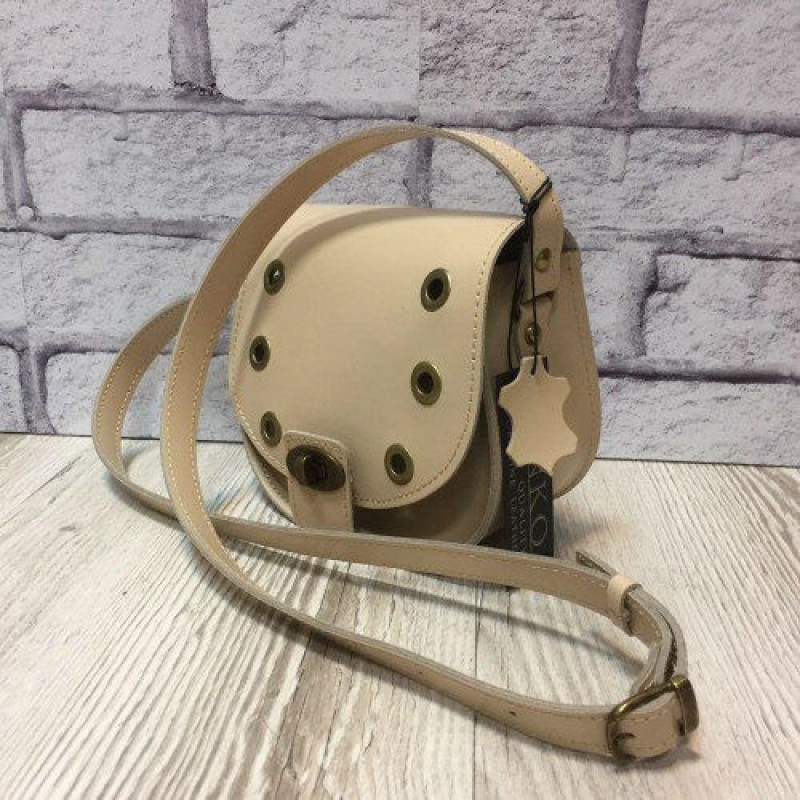- Сумка жіноча КЕНДІ натуральна шкіра, слонова кістка з декоративними заклепками.