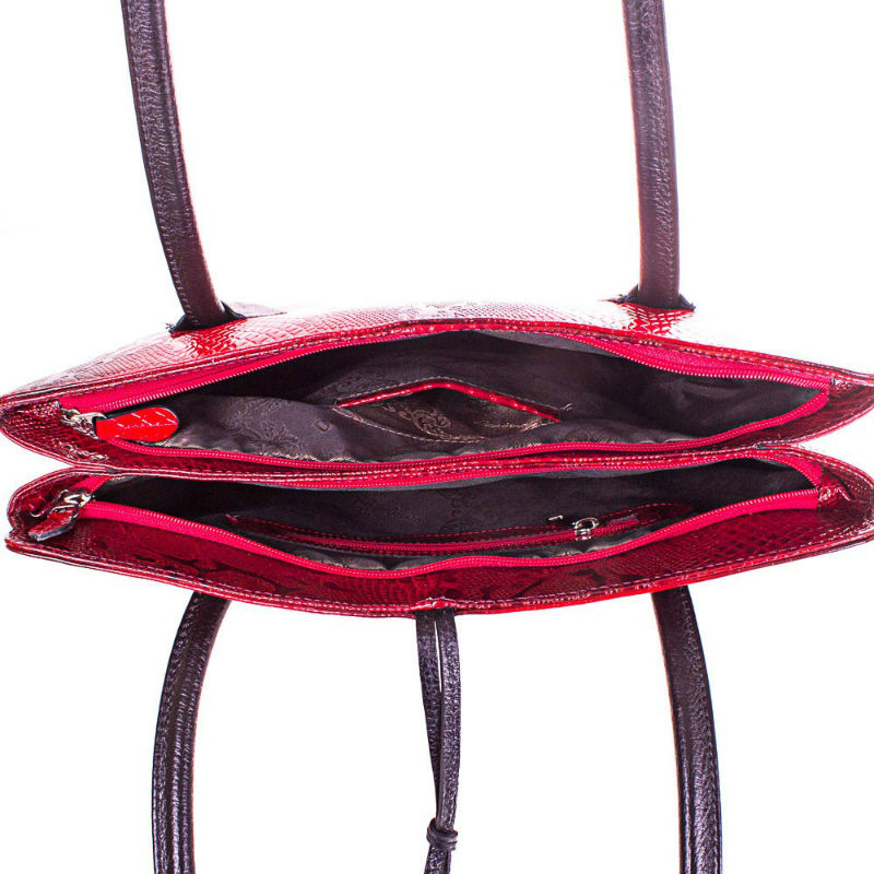 Сумка жіноча шкіра Desisan 062-500 червоний візерунок практична і ділова. Відмінно підходить під класичний стиль і кежуал.