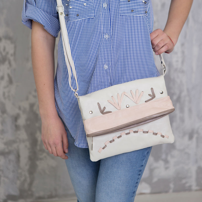 - Сумка жіноча шкіряна 91723 бежева з декоративними елементами.