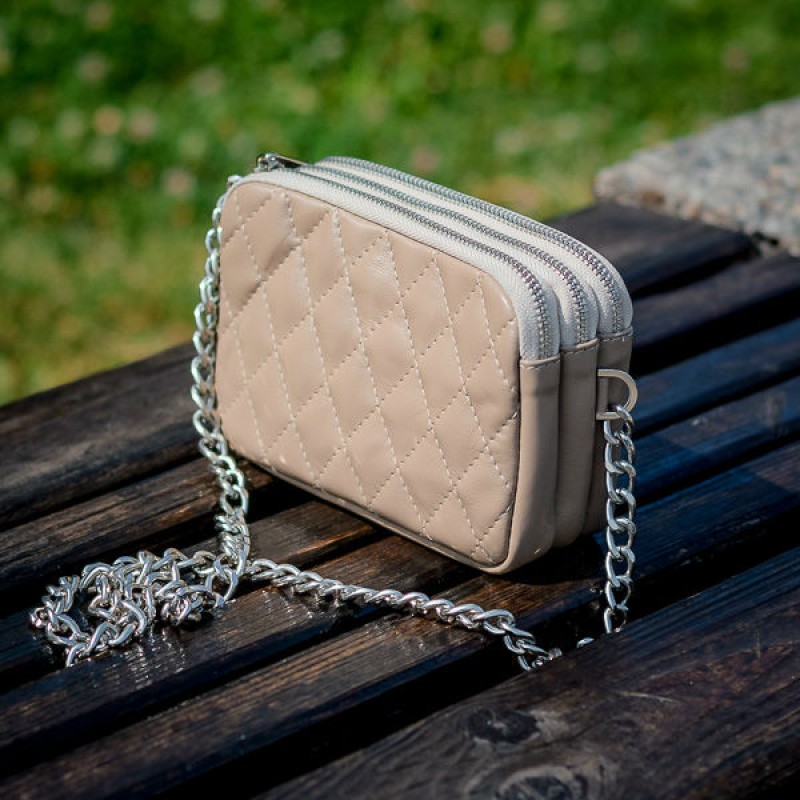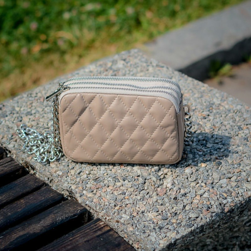 - Стьобана сумка жіноча шкіряна 91880 бежева на 3 відділення.