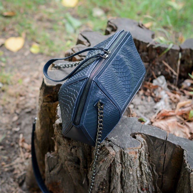 - Сумка жіноча шкіряна 91882 синя з гладкої шкіри під пітон.
