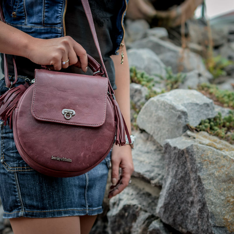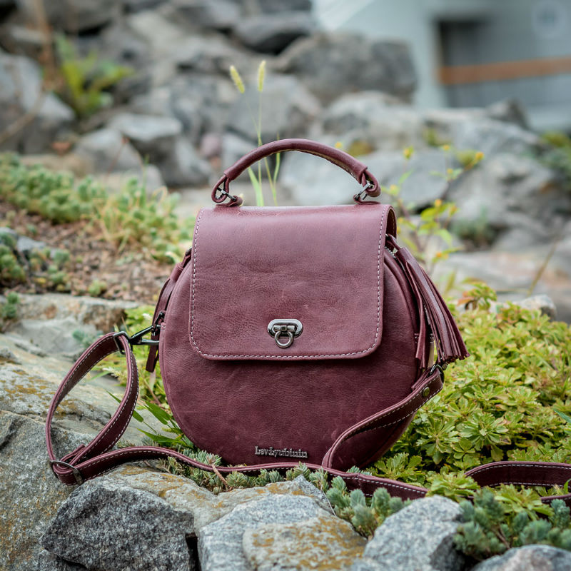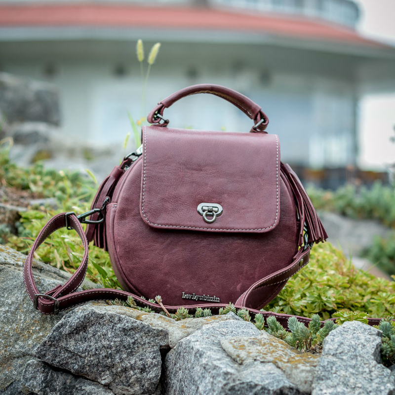 - Кругла жіноча шкіряна 91917 бордова з гладкої натуральної шкіри.