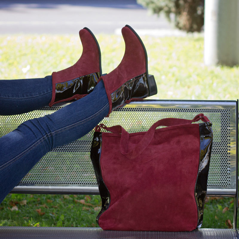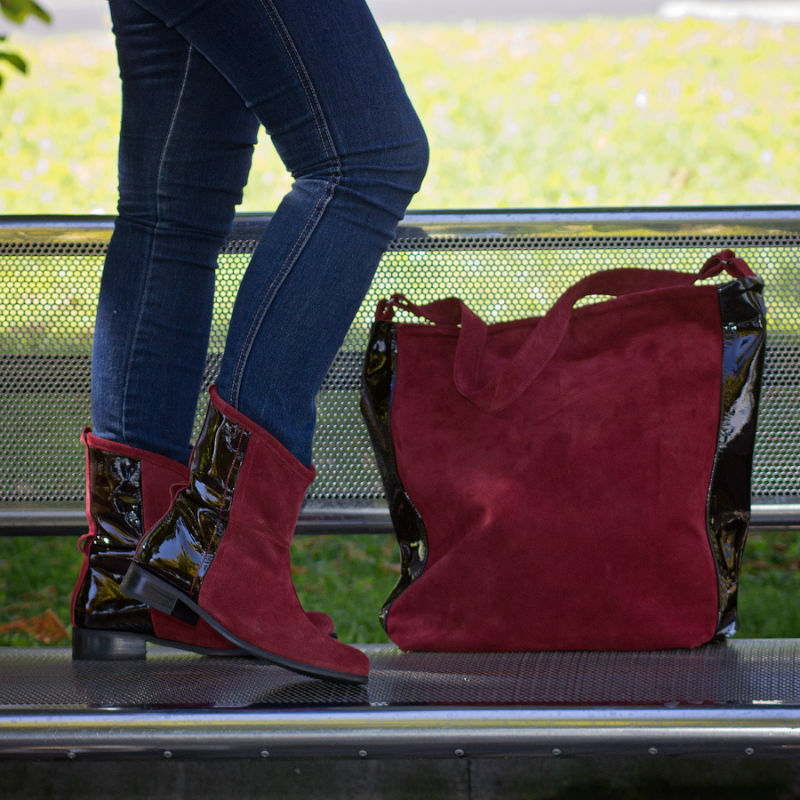 - Сумка жіноча замшева 91038 бордова з вставками з лакованої шкіри.
