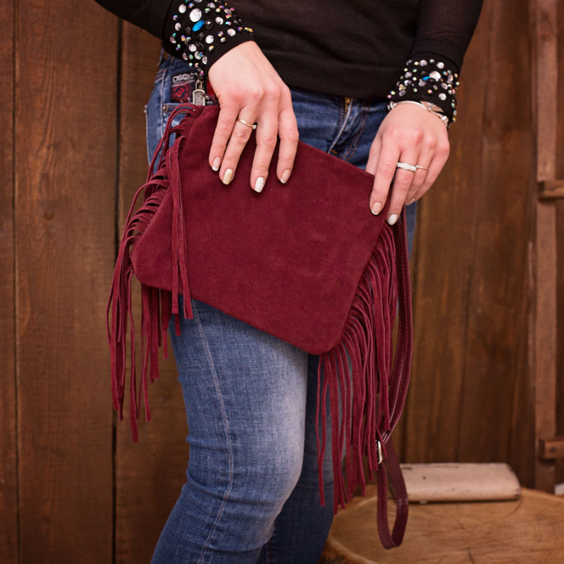 - Сумка жіноча замшева 91158 бордова з бахромою.