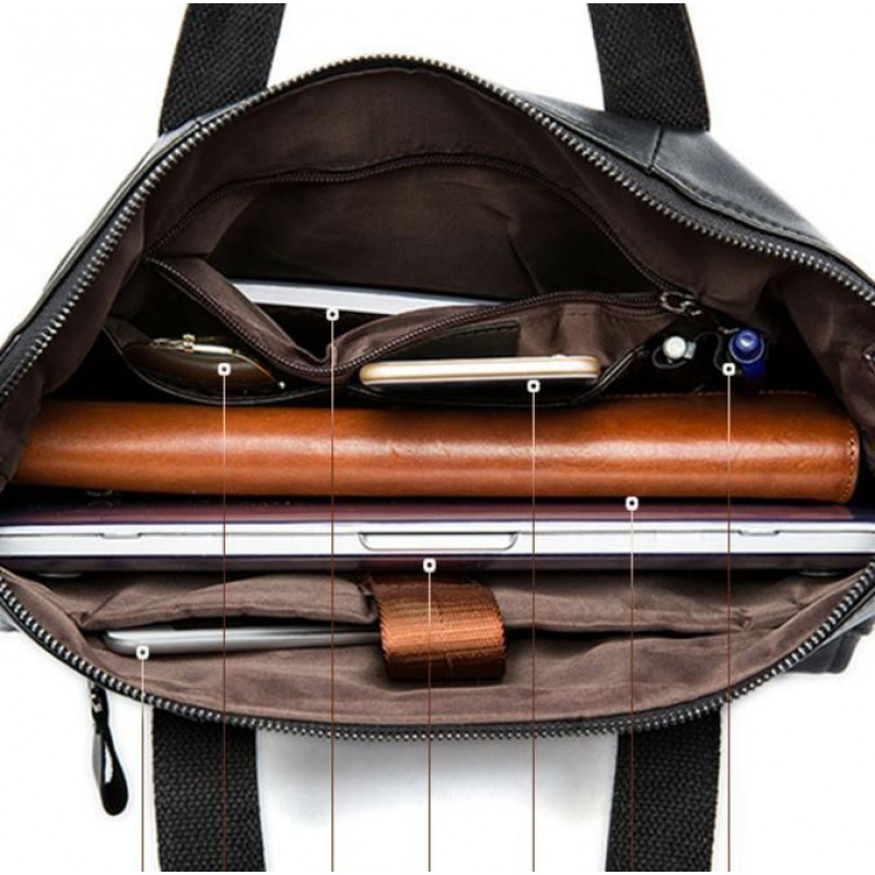 - Стильна чоловіча шкіряна сумка-портфель Jasper&Maine 7120A-1 чорна.
