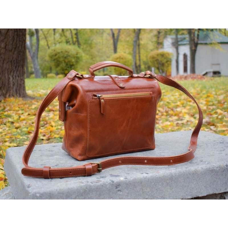 - Сумка шкіряна BABAK Classic Brandy 906088 бренді з металевою рамкою яка створює унікальну форму сумки.