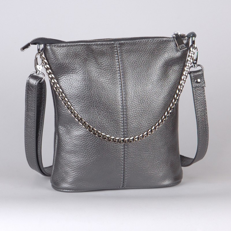 Сумка шкіряна жіноча через плече S410115-nikel нікель виготовлена з якісної натуральної шкіри і прикрашена ланцюжком