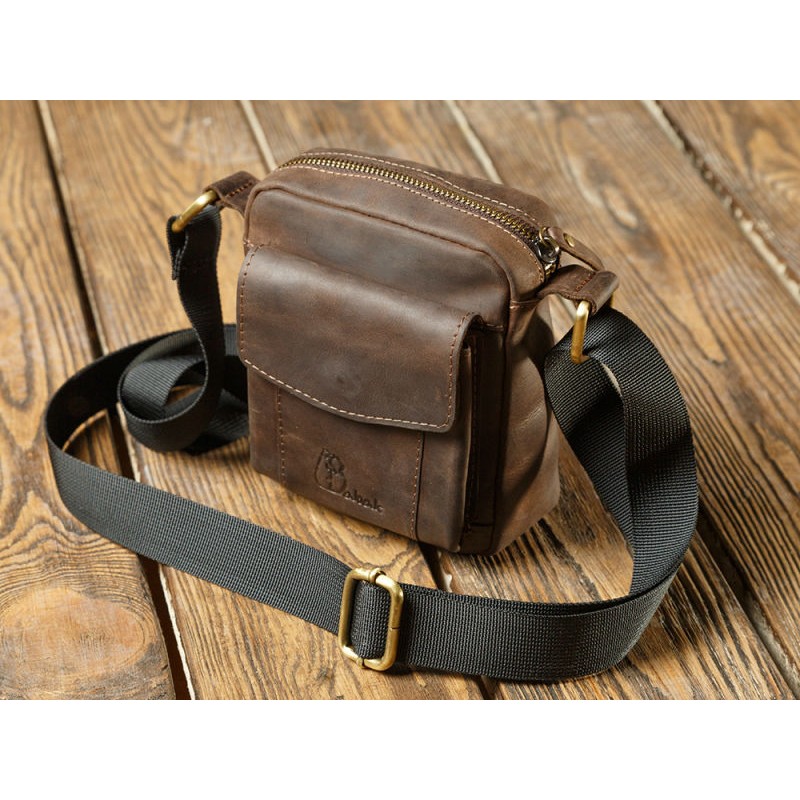 - Чоловіча шкіряна сумка mini 899051 коричнева виконана з натуральної шкіри Crazy Horse.