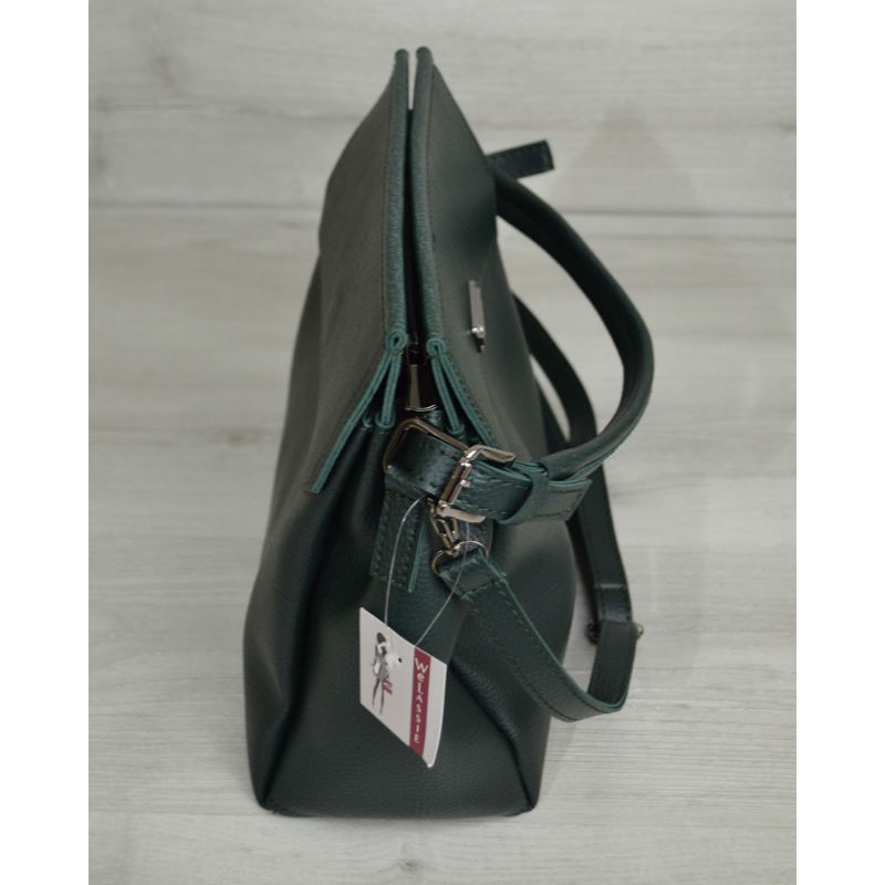 - Красива жіноча сумка Welassie на три відділення зеленого кольору (нікель) 54028.