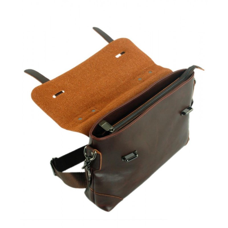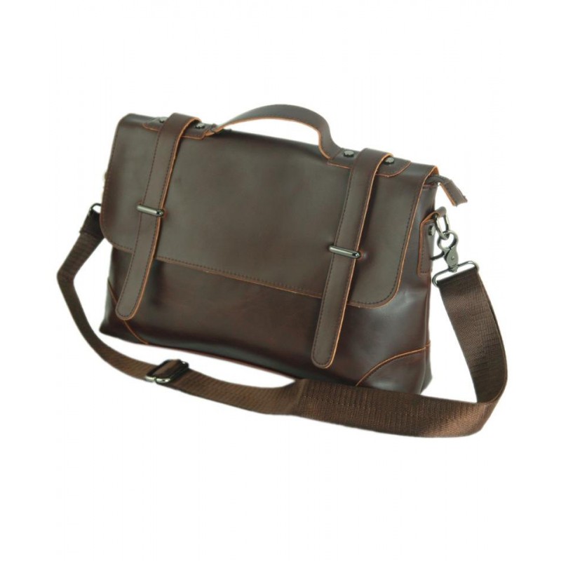 - Сумка-портфель TRAUM 7170-15 коричнева з великим клапаном і пристібається довгою ручкою.