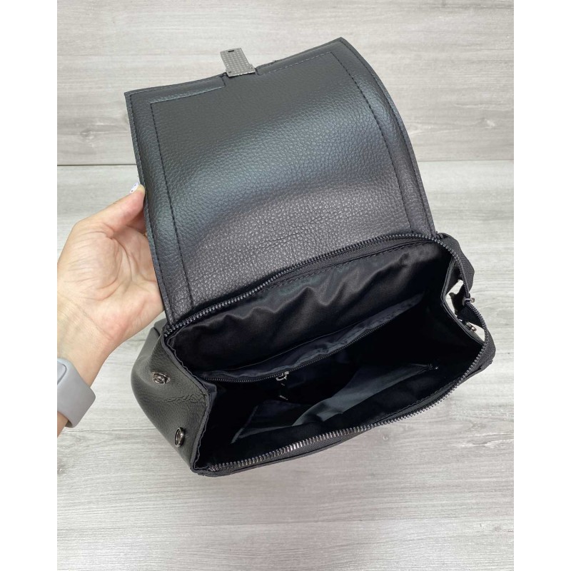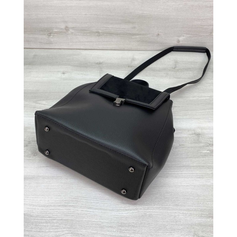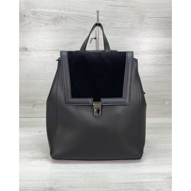 Сумка рюкзак «Луї» з замшем чорний Welassie 46424 з якісного шкірозамінника.