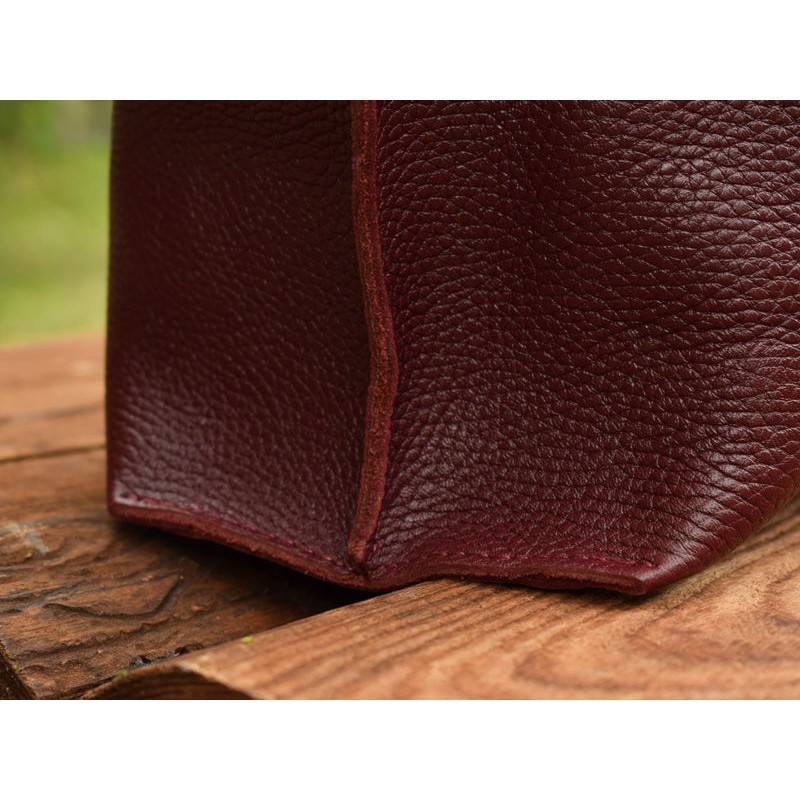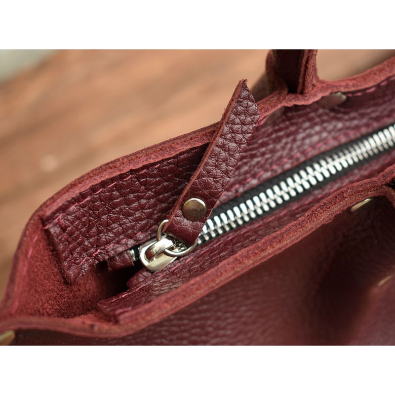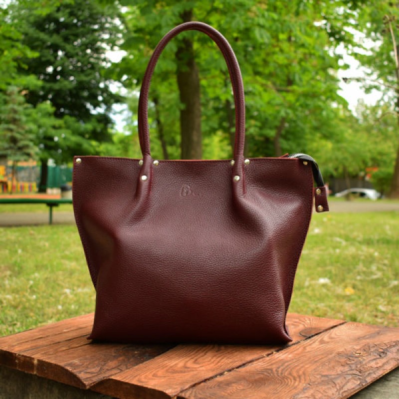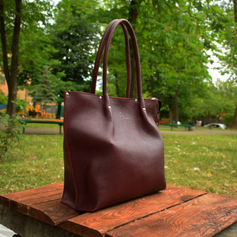 - Шкіряна сумка Shopper Bordo-shine 894013 кольору бордо у формі трапеції.