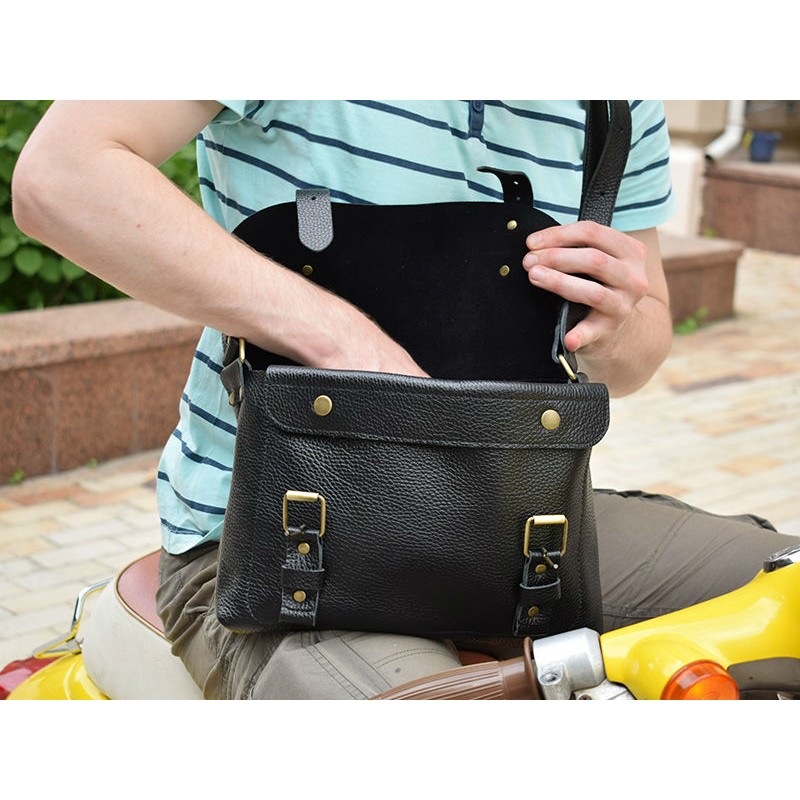 - Шкіряна сумка Сrossbody 861012 чорна через плече з м'якої натуральної шкіри з красивою фактурною поверхнею.