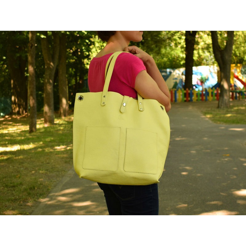 - Сумка Tote Lemon-shine 857015 лимонна виготовлена з м'якої натуральної шкіри "Флорида".
